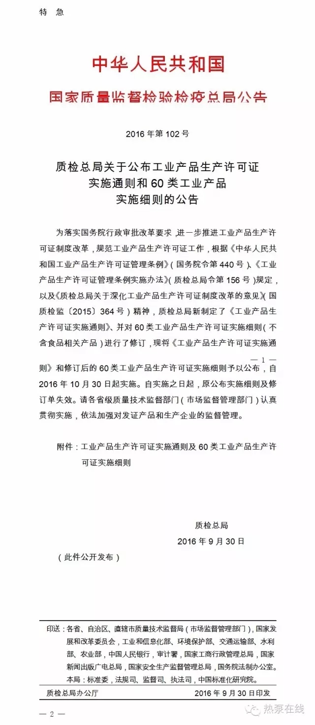 在上文通告附件《工業(yè)產品生產許可證實施通則及60類工業(yè)產品生產許可證實施細則》中質檢總局根據產品所屬不同的行業(yè)將工業(yè)產品分為85個類別,其中制冷設備為第60項,細則名稱為《制冷設備產品生產許可證實施細則》。